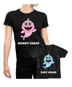 Coppia t-Shirt Festa della Mamma Maglietta Mamma Figlio Mommy Shark Baby Shark – Idea Regalo Mamma