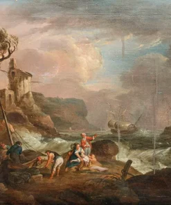 XVIII secolo, cerchia di Charles Francois Grenier de Lacroix(ca. 1700 -1782), Marina in tempesta