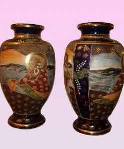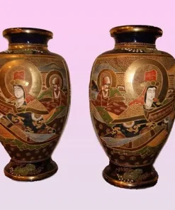 Coppia di vasi Satsuma del 1800 riccamente decorati