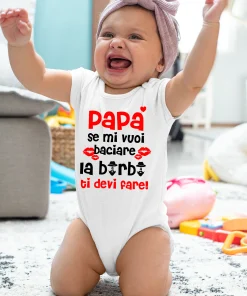 Body Neonato Divertenti Papà Se mi vuoi baciare la barba ti devi fare – Idea Regalo Festa del Papà