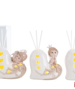 Bomboniera portacandele albero con bimba palloncini in polvere i marmo di Carrara