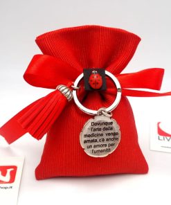 Bomboniera portachiavi laurea scenografia e spettacolo con nappina rossa