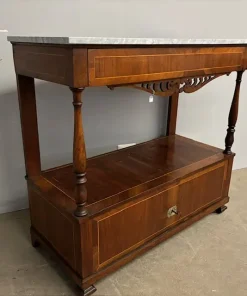 Antica credenza CARLO X 1840 – console noce marmo bardiglio . restaurata . mis 119 x 52 . H 110