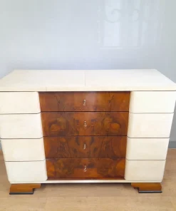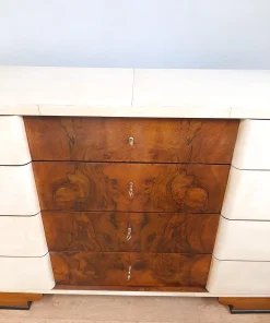 BEL COMO’ ART DECO’ IN RADICA DI NOCE E PERGAMENA, ANNO 1930-40, RESTAURATO