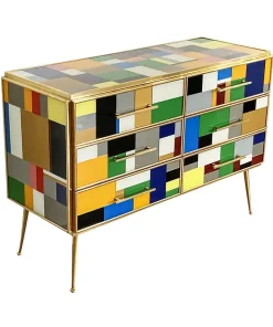 Cassettiera in vetro di Murano multicolore, anni ’80