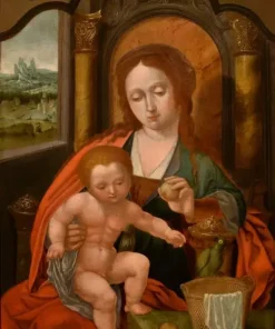 Madonna in trono con Bambino, Maestro del Pappagallo (Anversa, primi del XVI secolo), seguace
