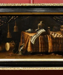 Natura morta armature, strumenti musicali e oggetti preziosi, Francesco Noletti detto il Maltese (Malta 1611-Roma 1654) Bottega/cerchia di