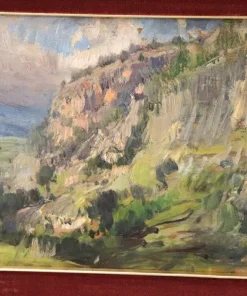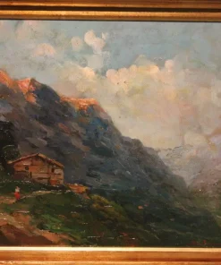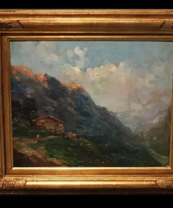 Olio su tavola Italiano del XX secolo raffigurante Paesaggio di montagna “Franco Ricciardi” firmato