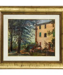 Pedroni, Casa di campagna con giardino, anni ’20, Olio su tela, con cornice