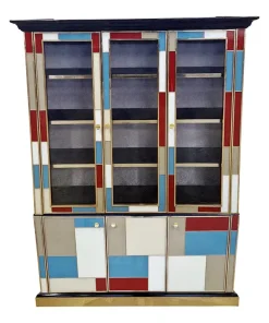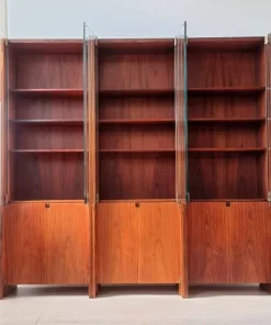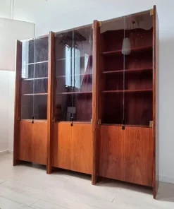 Libreria in Palissandro a Tre Moduli con Ante in Cristallo, anni ’60