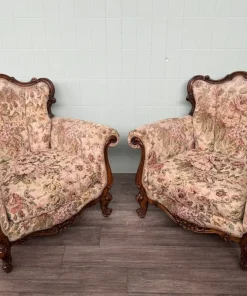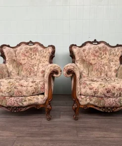 Coppia Di Poltrone Italiane In Noce Anni 50 In stile Barocco
