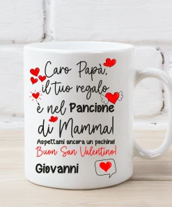 Tazza Sanvalentino PERSONALIZZABILE CON NOME divertente Caro Papà, il tuo regalo è nel pancione di Mamma Buon SanValentino – love – amore Mug in ceramica 11 Oz