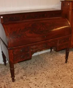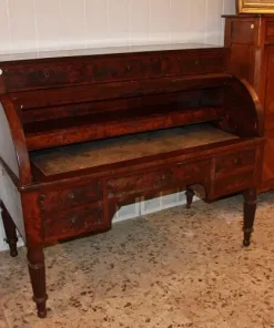 Grande scrivania a rullo francese di metà 1800 Stile Direttorio in piuma di mogano