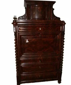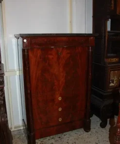 Secretaire francese del 1800 stile Impero in legno di mogano e piuma di mogano