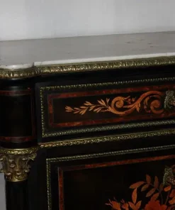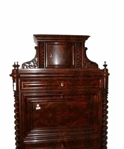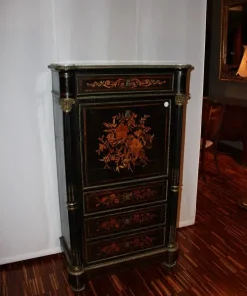 Secretaire francese stile Napoleone III in legno di ebano riccamente intarsiato