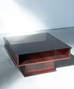 Vintage Mahogany Coffee Table with Glass Top – 1970s