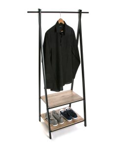 Appendiabiti per ingresso con ripiani in legno e metallo stile industriale cm 75x45x150h