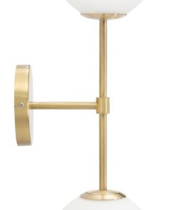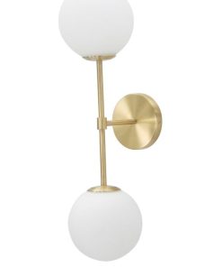 Applique da parete due luci in metallo dorato paralume in vetro bianco cm 15x21x55h