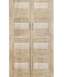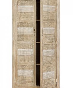 Armadio 2 ante in legno di mango con ripiani interni decorazioni intagliate cm 88x40x178h