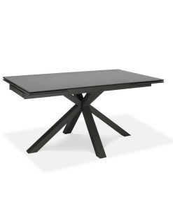 Tavolo moderno allungabile base in metallo e piano in vetro colore nero cm 105/165x95x77h