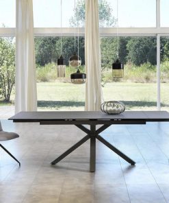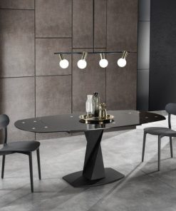Tavolo moderno allungabile base in metallo e piano in vetro colore nero cm 105/165x95x77h