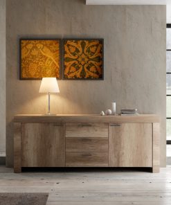 Teofila – Madia moderna 2 ante 3 cassetti in legno naturale cm 210x43x83h – vari colori