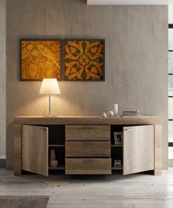 Teofila – Madia moderna 2 ante 3 cassetti in legno naturale cm 210x43x83h – vari colori