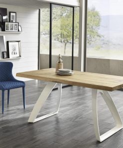 Tower fisso – Tavolo moderno fisso gambe in metallo bianco piano in legno cm 200x100x76h