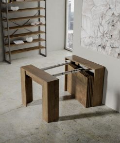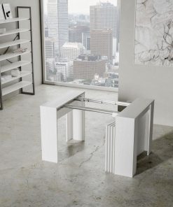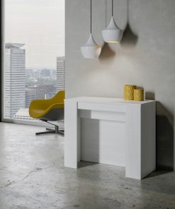 Venus – Consolle moderna allungabile con porta allunghe bianco frassino cm 90×48/296x77h