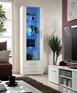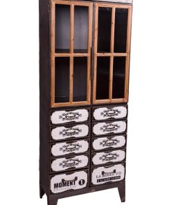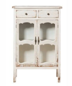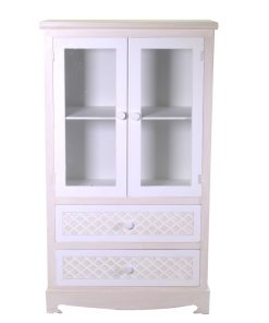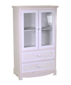 Vetrinetta con 2 cassetti in legno stile classico colore bianco e naturale cm 70x35x121h