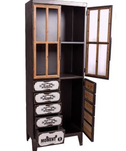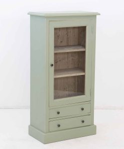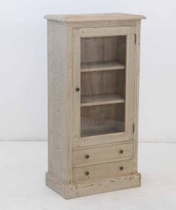Vetrinetta classica con due cassetti in legno massello finitura naturale cm 60x33x120h