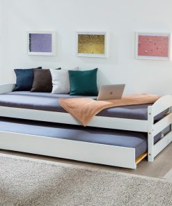 Vindas – Letto singolo in legno bianco con doppio lettino trasformabile in matrimoniale