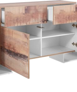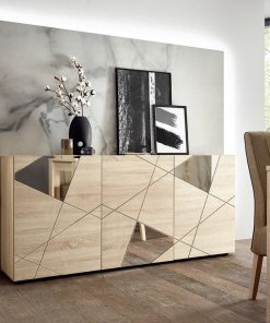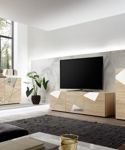 Virginia – Sala completa salotto moderno con mobile tv e madie in legno rovere con specchi