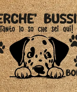 Tappeto PERSONALIZZATO con nome cane divertente Dalmata Perchè bussi? Zerbino in poliestere 60×40 cm