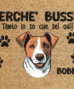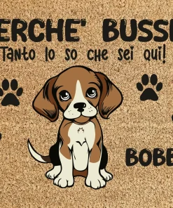 Tappeto PERSONALIZZATO con nome cane divertente Beagle Perchè bussi? Zerbino in poliestere 60×40 cm