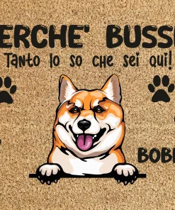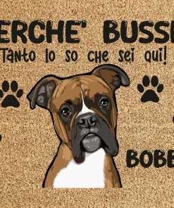 Tappeto PERSONALIZZATO con nome cane divertente Boxer Perchè bussi? Zerbino in poliestere 60×40 cm