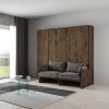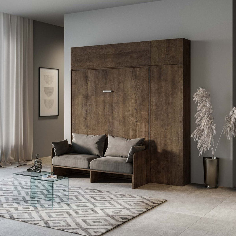 Anche il letto a scomparsa Abdor dispone di una versione con sofà, ossia una grande e solida struttura in legno che comprende un letto matrimoniale a scomparsa, un divano due posti e 3 mobili: colonna laterale e due pensili superiori a vasistas. I cuscini sono inclusi e presentano il rivestimento in microfibra. Il letto moderno Abdor è fornito di una rete con ferro rinforzata comprensiva di doghe, realizzato interamente in Italia, con professionalità e cura per ogni dettaglio.