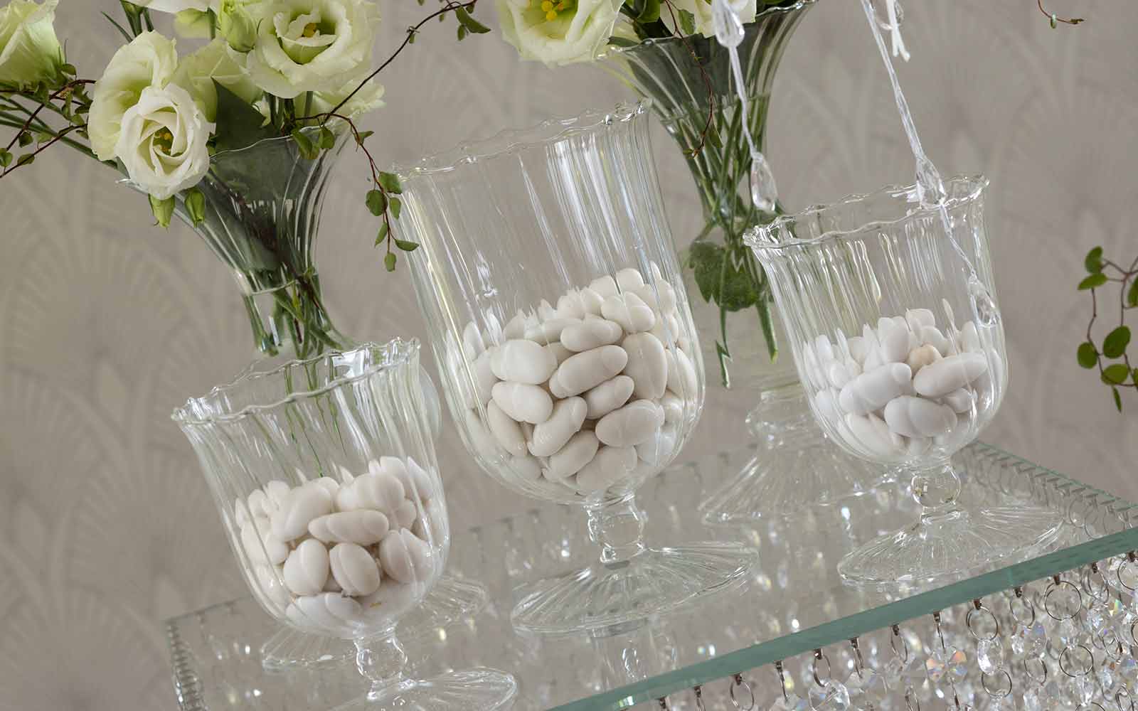 La confettata per un matrimonio elegante e sofisticato va in scena con preziosi oggetti in vetro e cristallo come ciotole porta confetti, candelabri e sontuose alzate di varie dimensioni, perfette per illuminare di riflessi le tavole nuziali. Quest’anno le presentiamo in versione personalizzata quadrata.