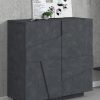 Straordinaria madia da soggiorno, in legno, disponibile nella colorazione bianco lucido, cemento o ossido. La struttura del mobile dispone di 2 ante con 2 ripiani interni, e 3 vani perfetti per riporre riviste, piantine o foto ricordo. Il design della credenza presenta delle forme geometriche, un design moderno e originale, per arredare la vostra casa con stile e raffinatezza.
