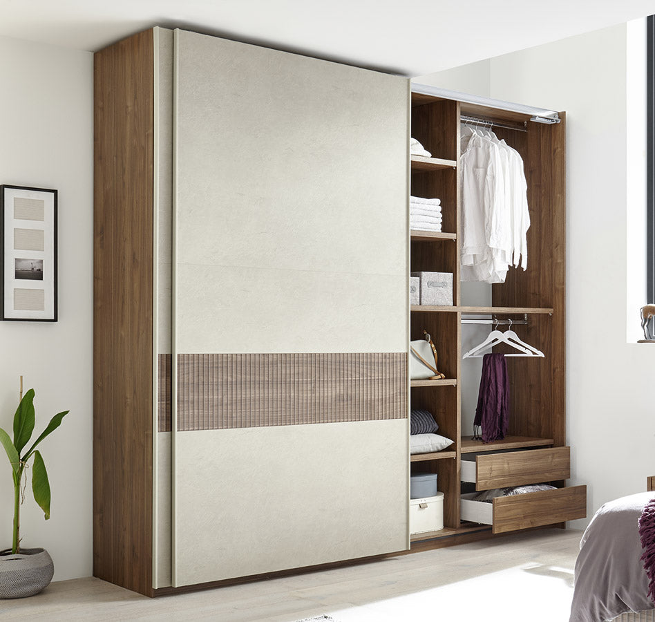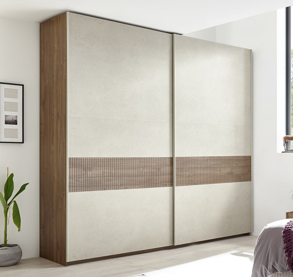 Armadio da camera 2 ante scorrevoli in legno frontali argilla laterali noce