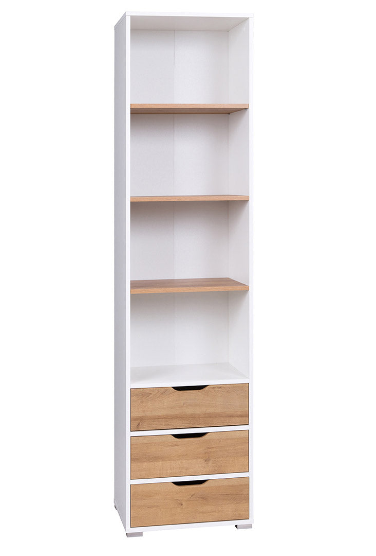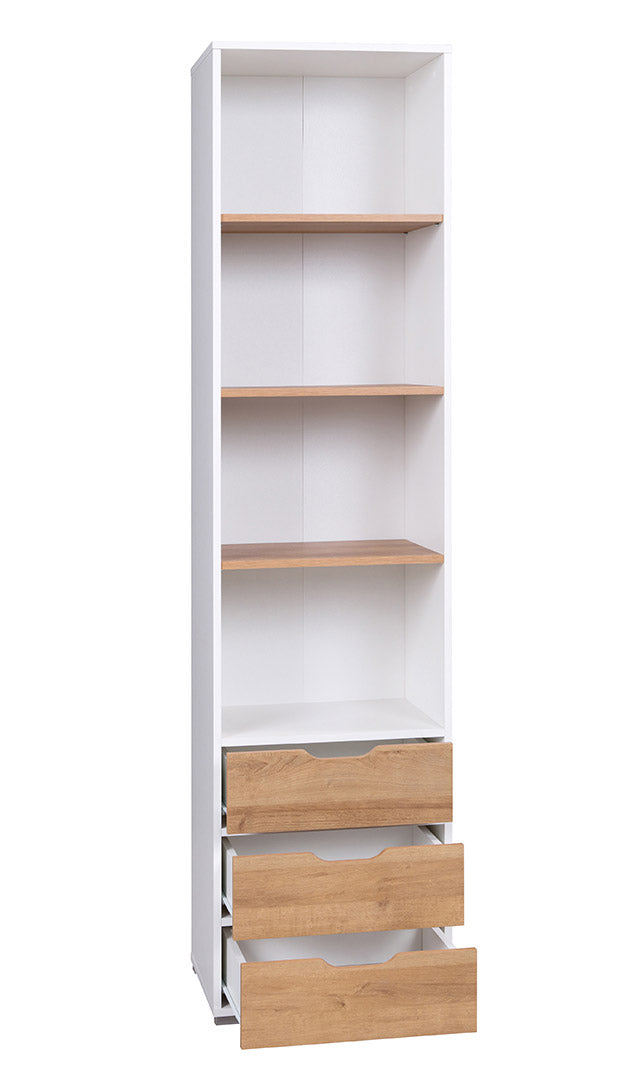 Alaric – Libreria a colonna con cassetti in legno bianco e naturale cm 50x40x200h