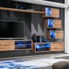 Parete attrezzata Alcanet formata da 9 elementi sospesi e componibili, ciò significa che la composizione proposta è solo una delle soluzioni possibili e che potrai stravolgerla in base alle tue esigenze e gusti. Tutti i componenti della parete moderna Alcanet sono prodotti in legno, definiti da forme schematiche ed alcuni, arricchiti da ante vetrate e luci a led. Alcanet è fruibile in tante proposte di diveso colore.