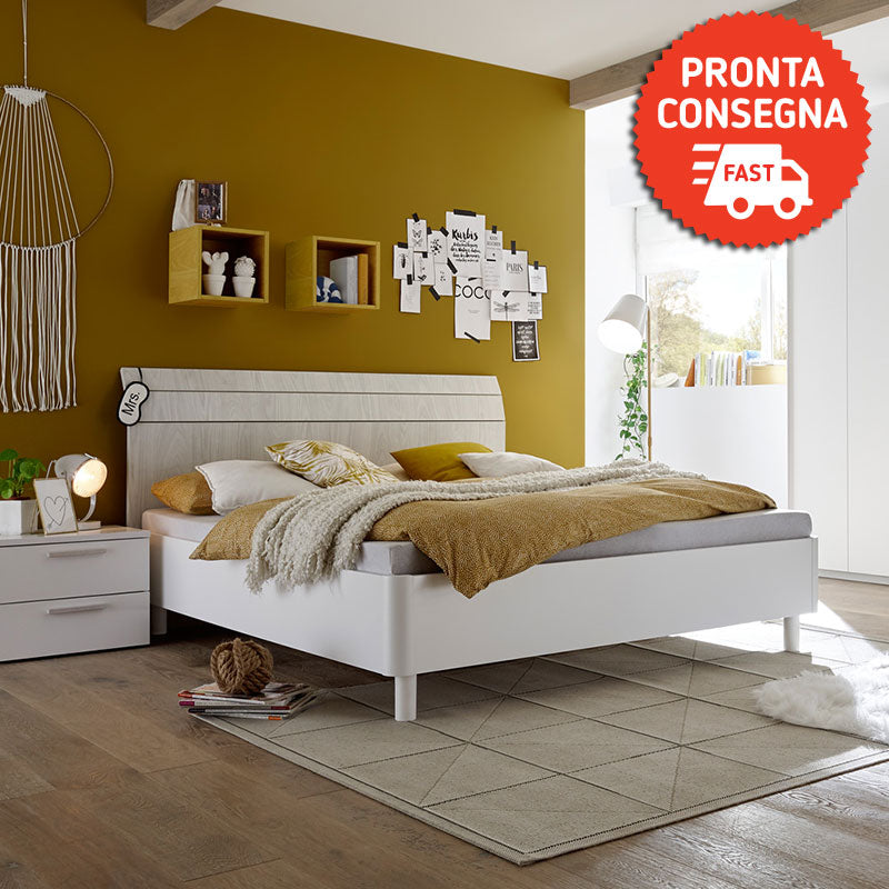 Letto matrimoniale da cm 160 realizzato interamente in legno, un modello piacevole per la sobrietà di stile e di colori che lo caratterizzano. La testiera a doghe sono l’elemento che connota questo modello, ideale per una camera contemporanea e confortevole.