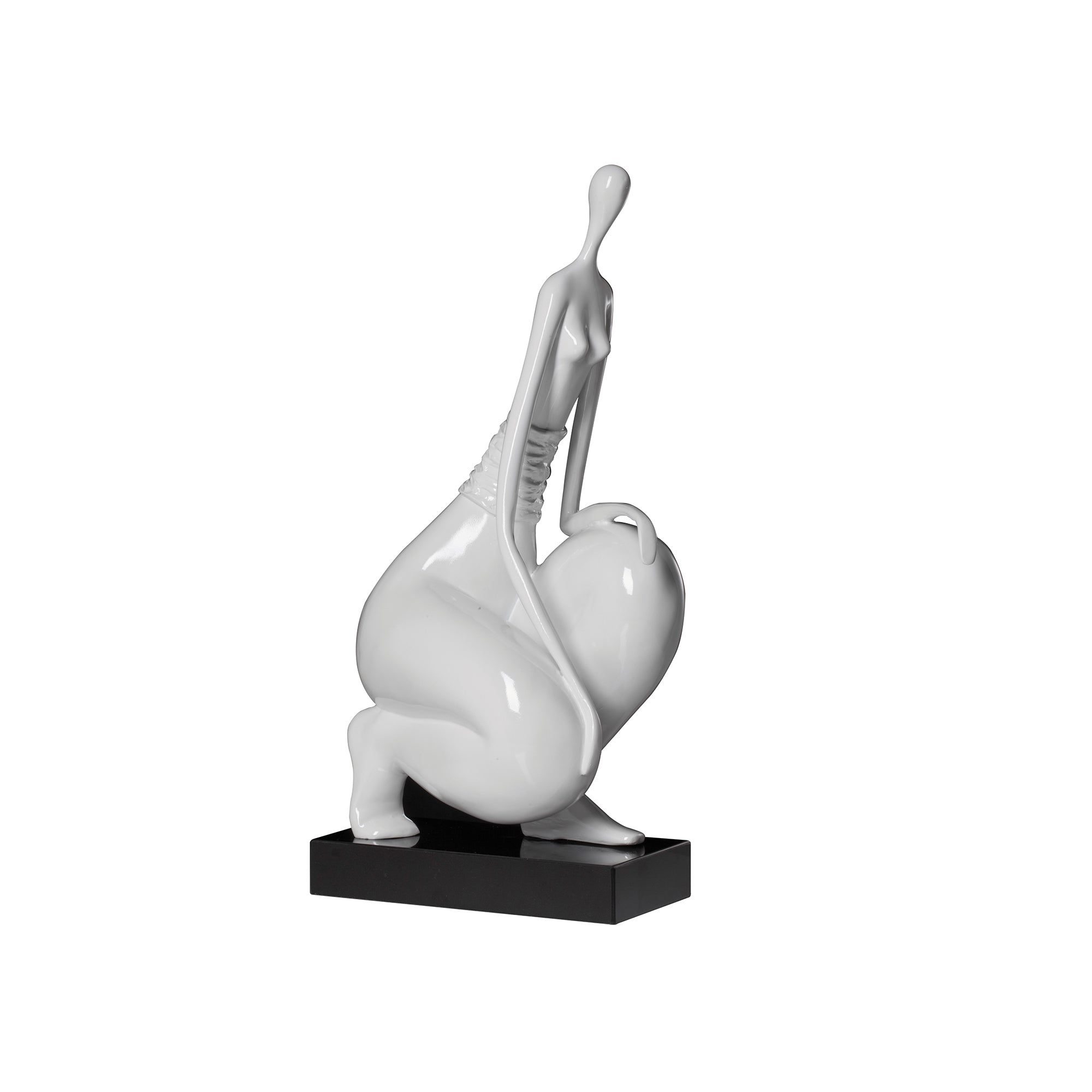 Scultura decorativa raffigurante una donna realizzata da artigiani esperti in poliresina di colore bianco. La scultura ricalca un genere moderno anche grazie al marmo nero utilizzato come base di appoggio per la struttura, e si adatta in ogni ambiente con molta facilità. Grazie alla colorazione bianca si riesce ad unire una scultura di alta classe con mobili moderni, elementi che combinati creano composizioni uniche e fantastiche.