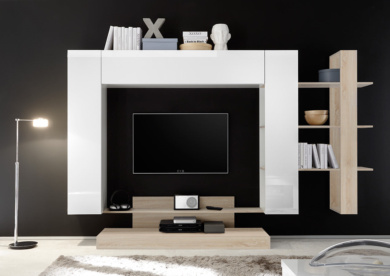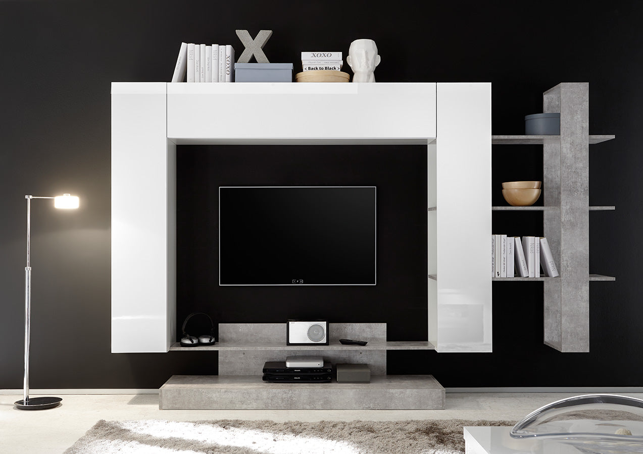 Almarosa – Parete attrezzata soggiorno con libreria e porta tv – vari colori