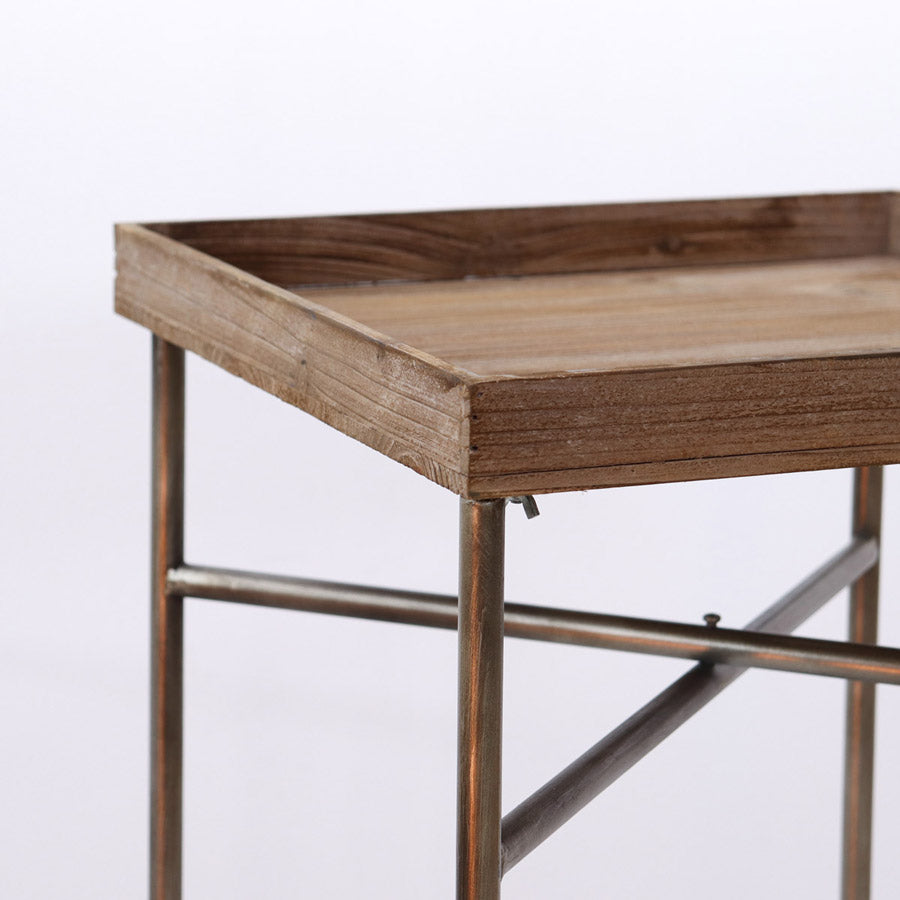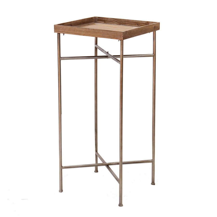 Alzatina da salotto con struttura in metallo champagne e piano in legno. Perfetta per chi ama arredare la propria casa con semplicità e sobrietà, ideale per riporre sopra una lampada, un vaso di fiori o foto ricordo.