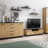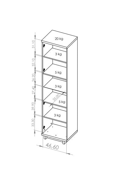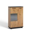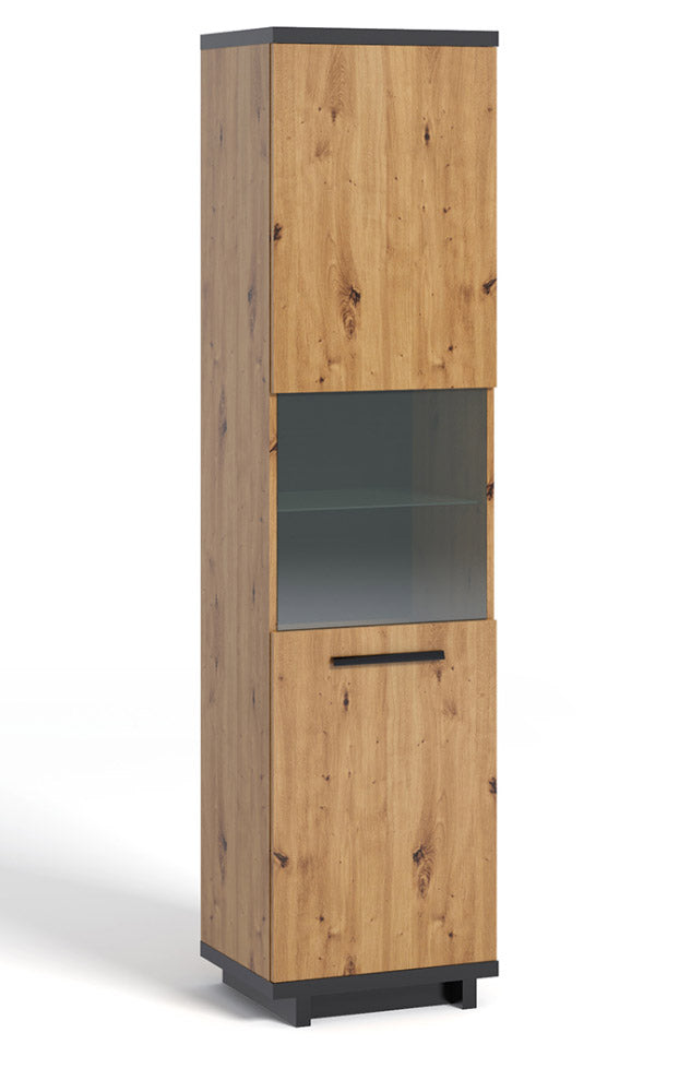 Amodia – Mobile a colonna con vetrinetta stile industrial in legno naturale e nero cm 50x40x200h