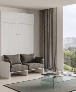 Andales versione matrimoniale da oggi offre la possibilità di include un sofà, un ulteriore elemento che si aggiunge in questa fantastica struttura in legno compatta e funzionale, progettata specificatamente per ambienti ristretti che hanno necessità di guadagnare spazio. L’anta frontale per estrarre il letto si apre in un solo gesto con l’ausilio del movimento assistito, inoltre, la struttura presenta un pratico pensile superiore con apertura a vasistas con due vani interni.