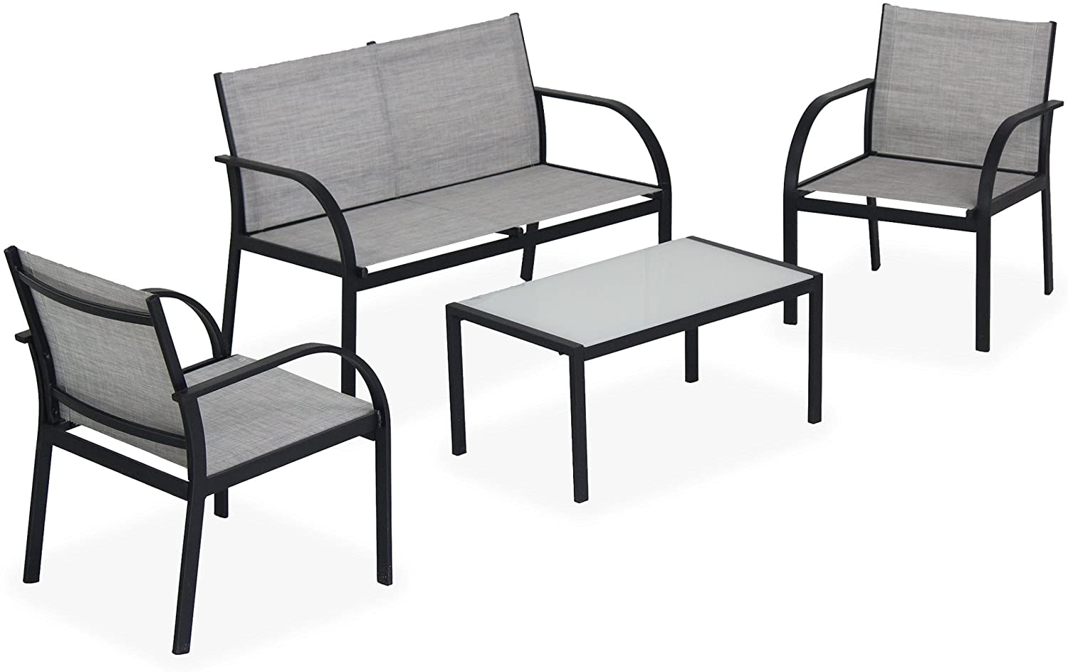 Ankara – Salotto da esterno con tavolo divano poltrone in metallo e tessuto