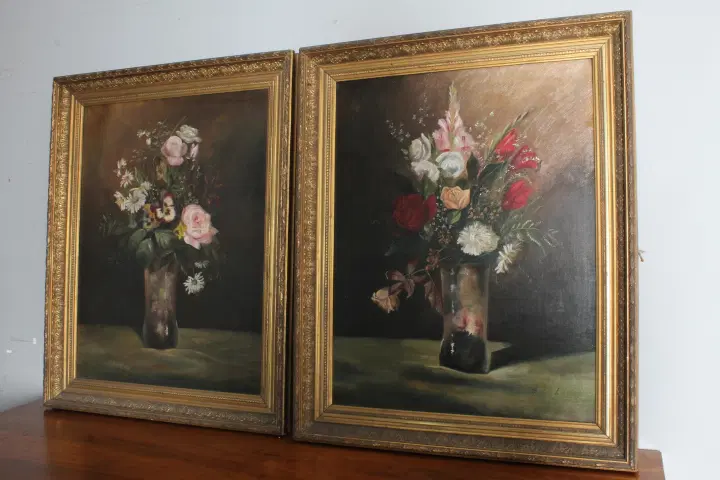 Antica coppia dipinti Vaso con fiori olio su tela . fine 800 . Molto bella la qualità con cui sono stati realizzati. firmati Bélaval Cornici coeve dorate . Mis 78 x 62 compresa cornice. Nessun intervento da effettuare.